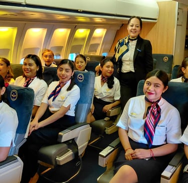 En la formación de sobrecargos, realizamos dos prácticas esenciales que marcan la diferencia entre una preparación básica y una verdaderamente profesional.